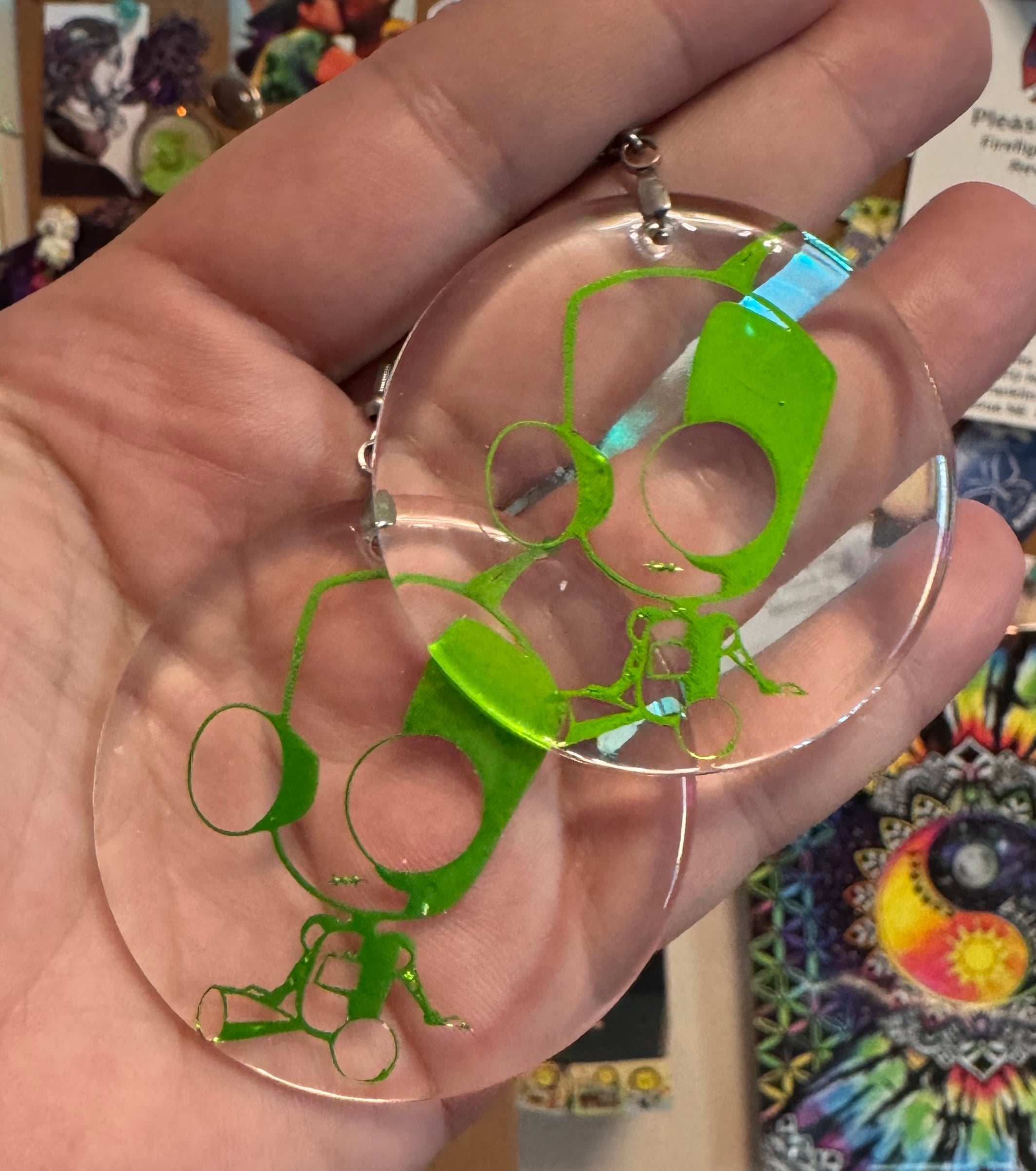 Mostly decals, stickers, and magnets, I dabble in some resin jewelry as well, plus the occasional experimental or one-off piece. I’ve done bookmarks and suncatchers all off of someone else’s requests. If it can be cut, printed, or turned into something fun, there’s a good chance I’ll try it.