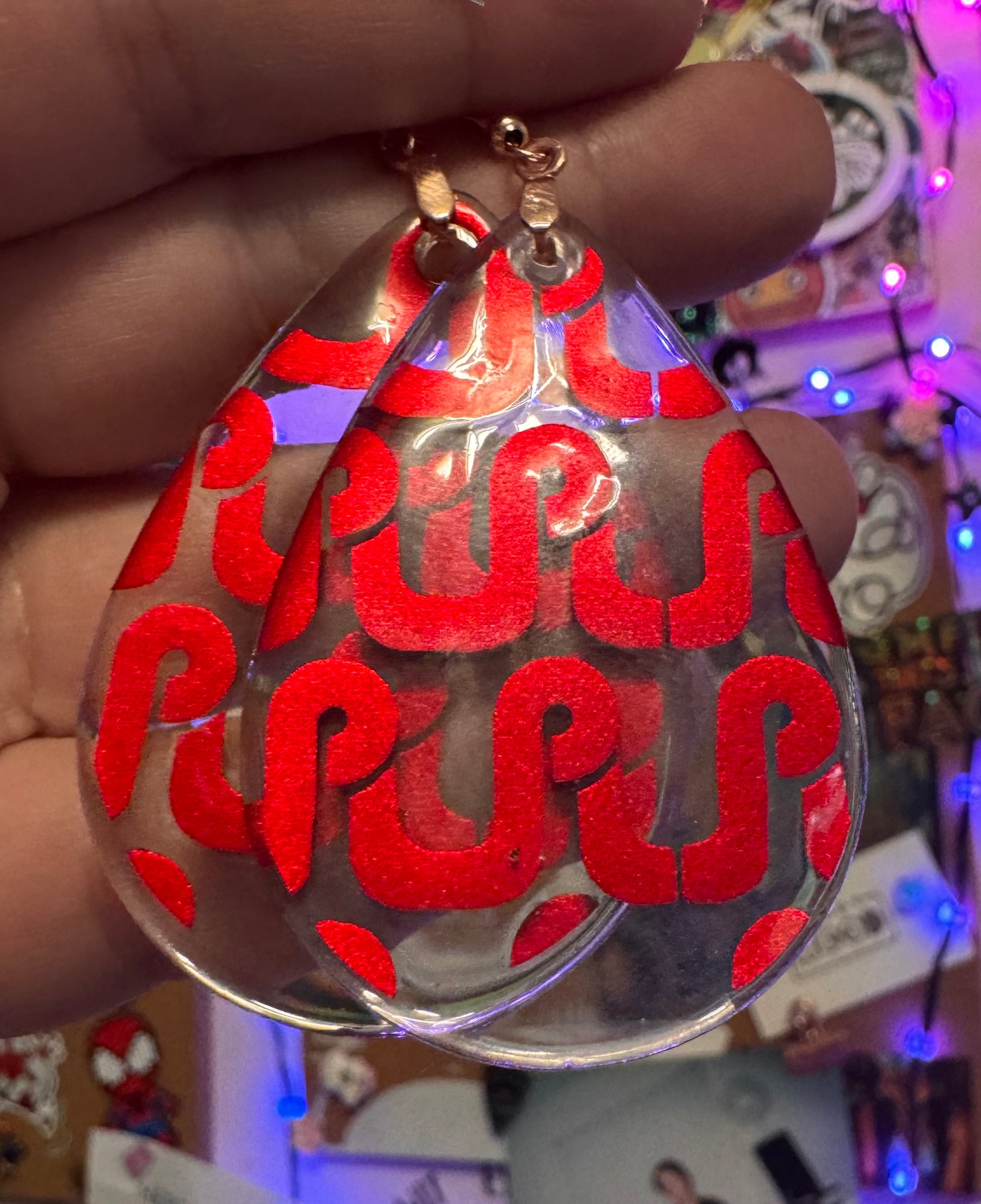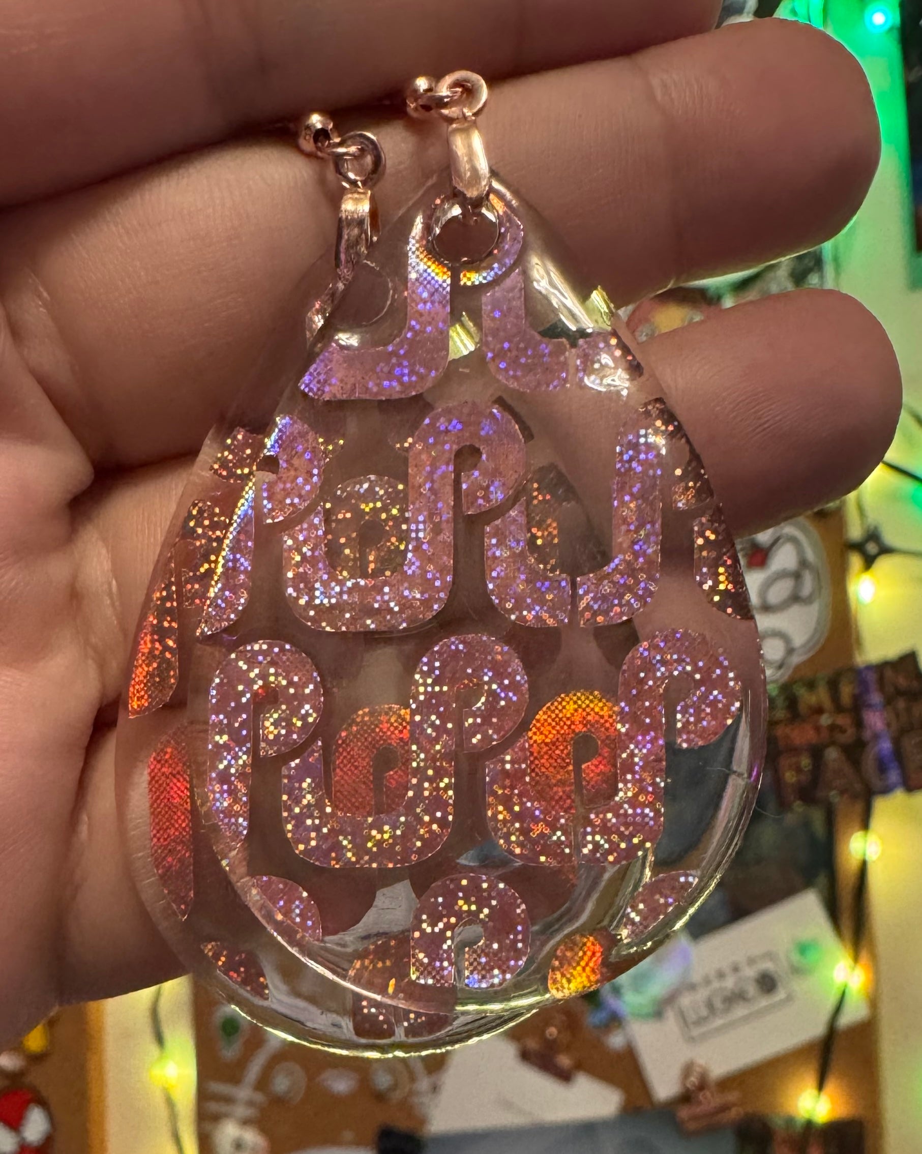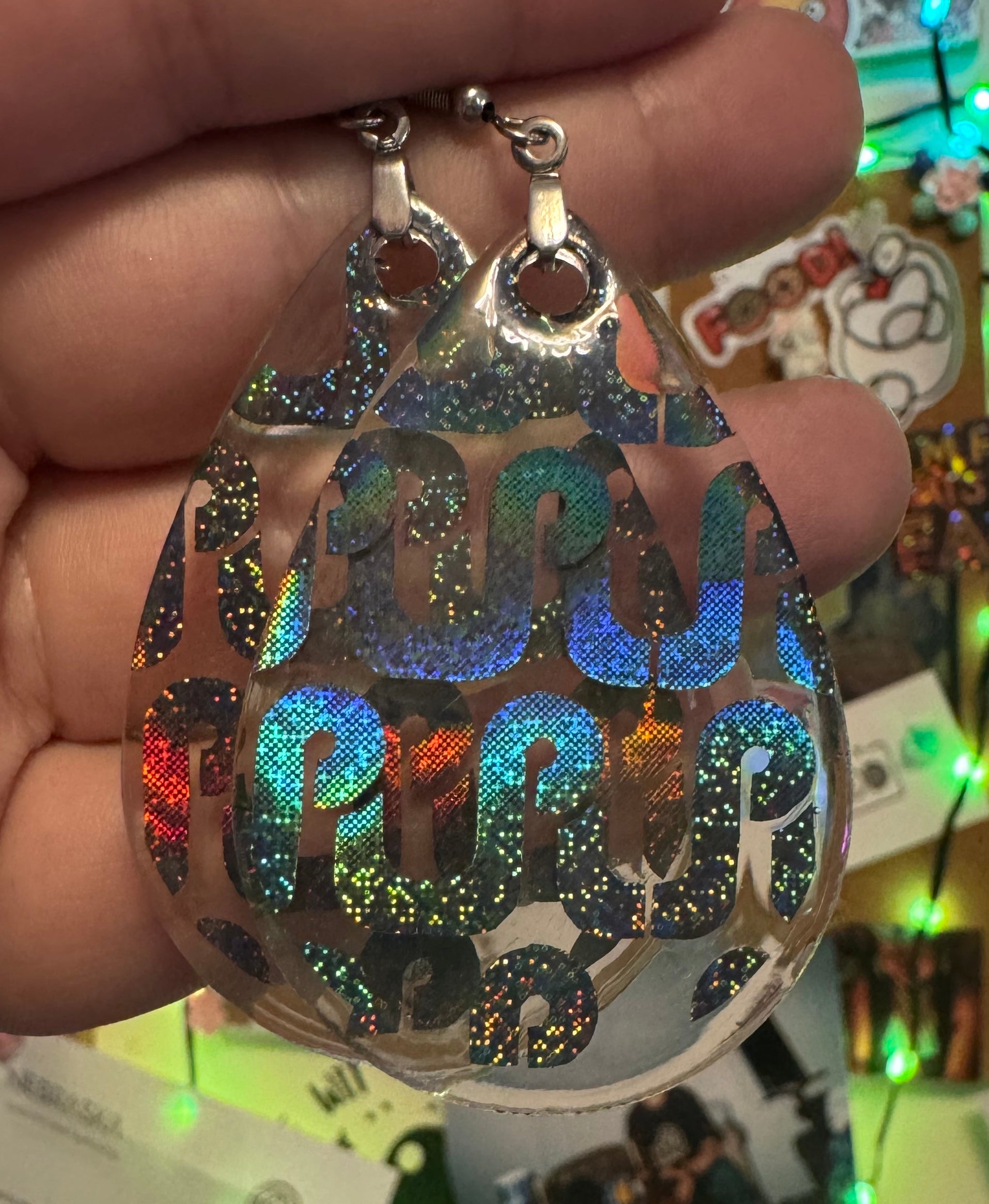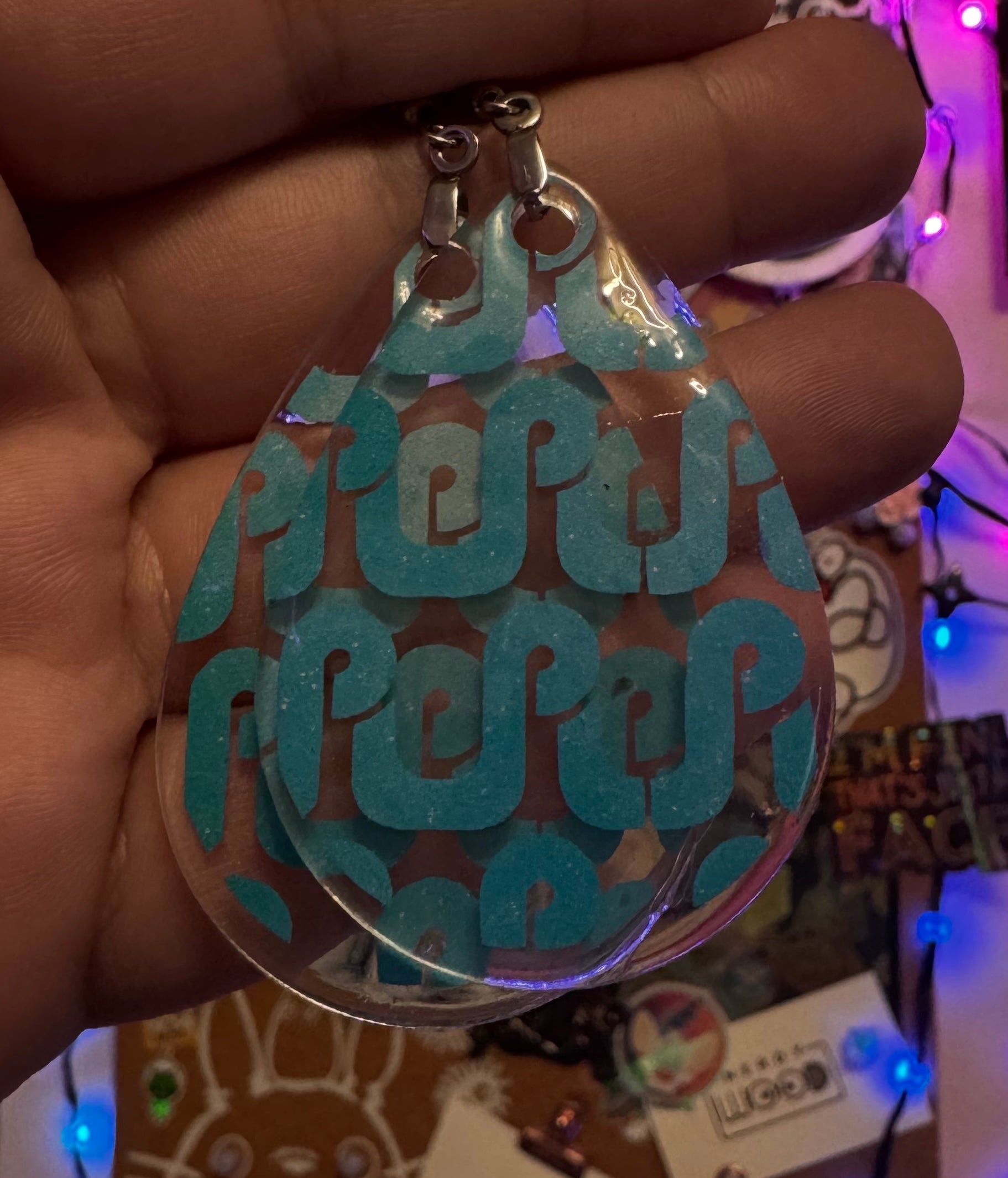 ✨ Single Layer Pretty Lights Logo Resin Teardrop Earrings ✨