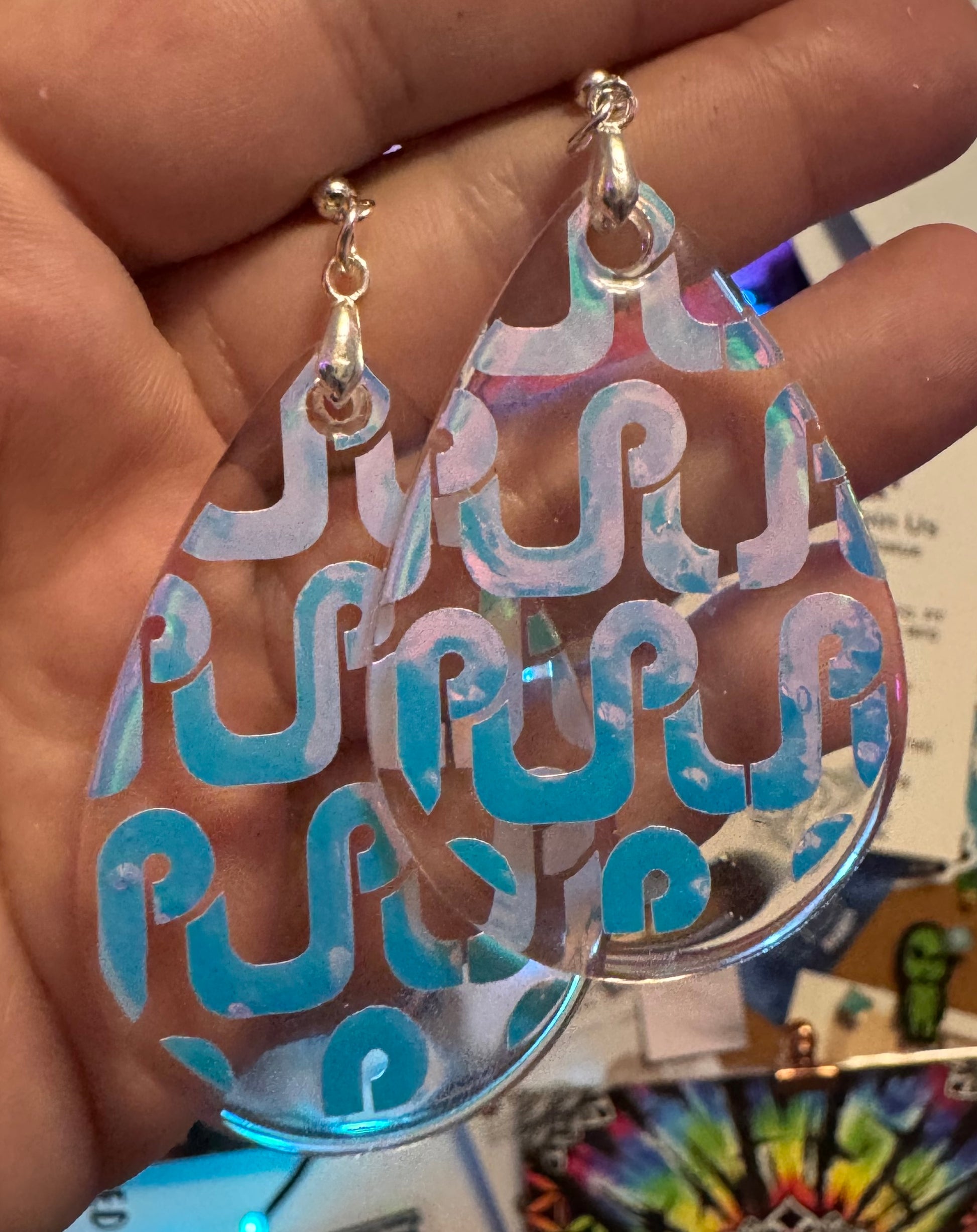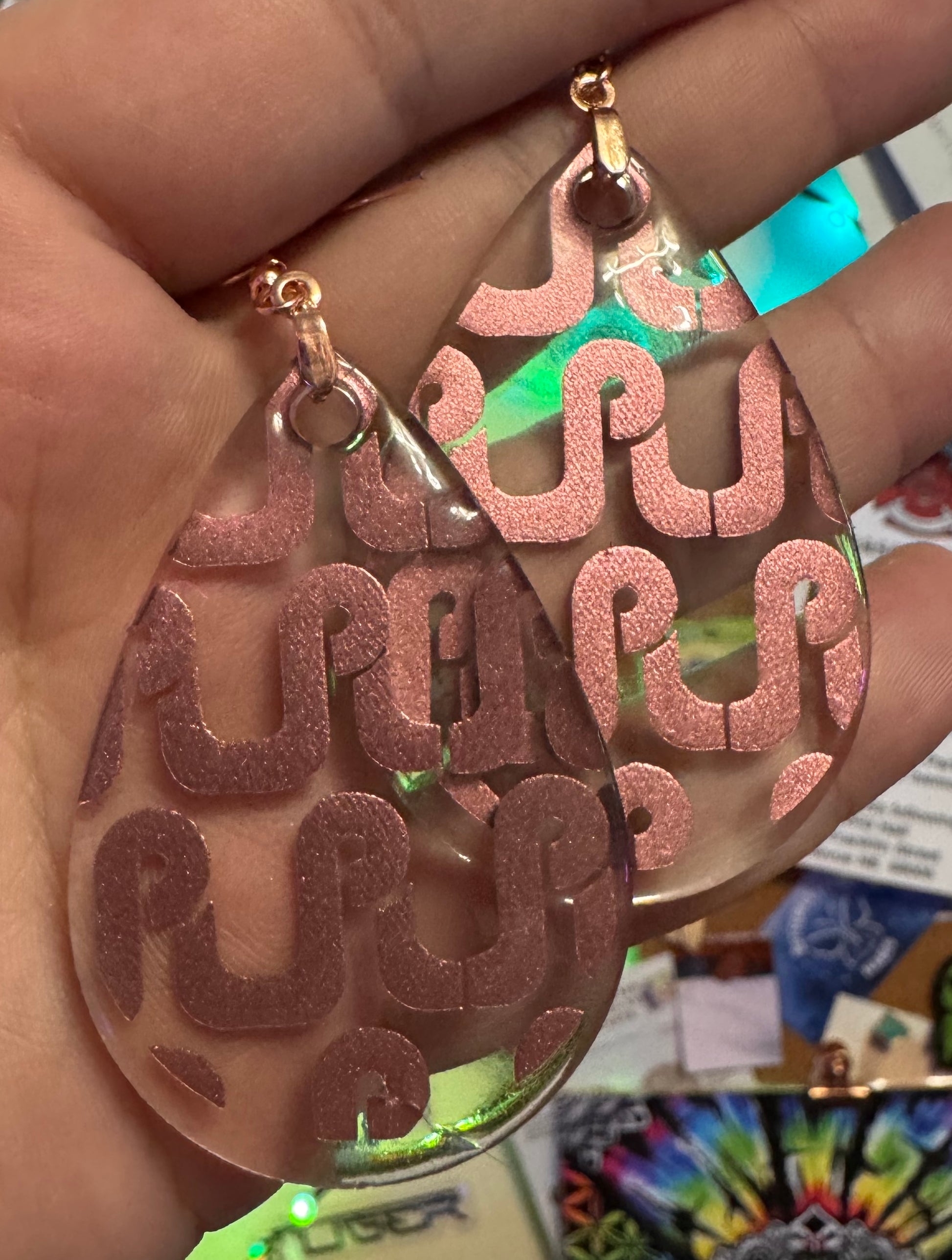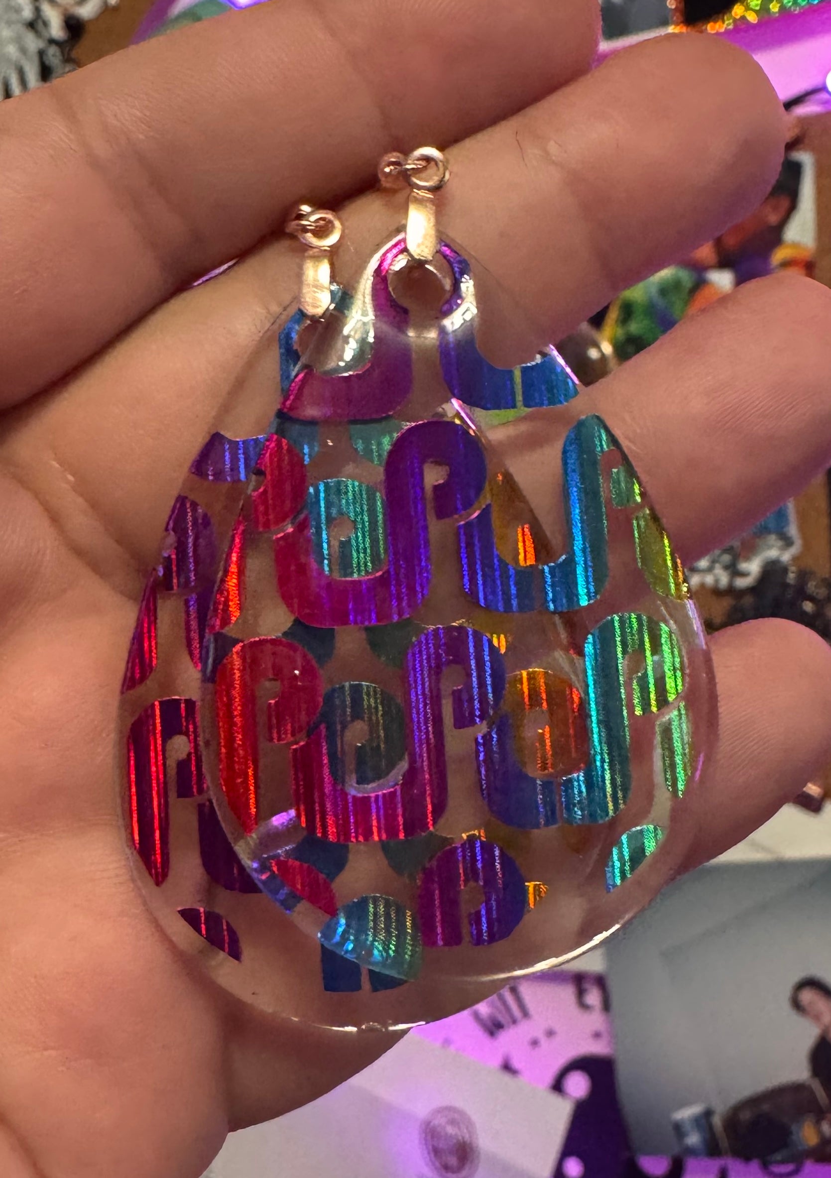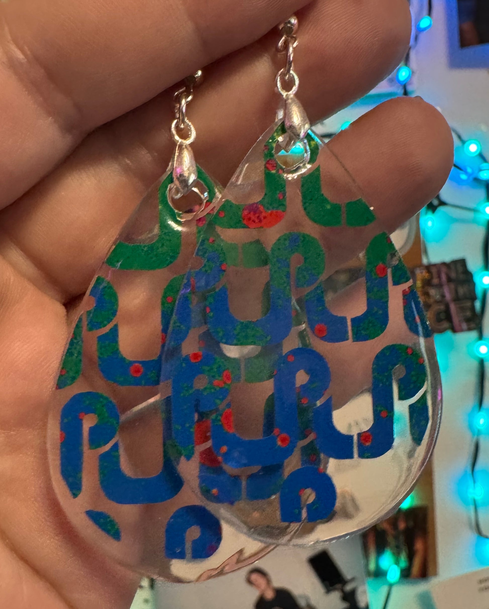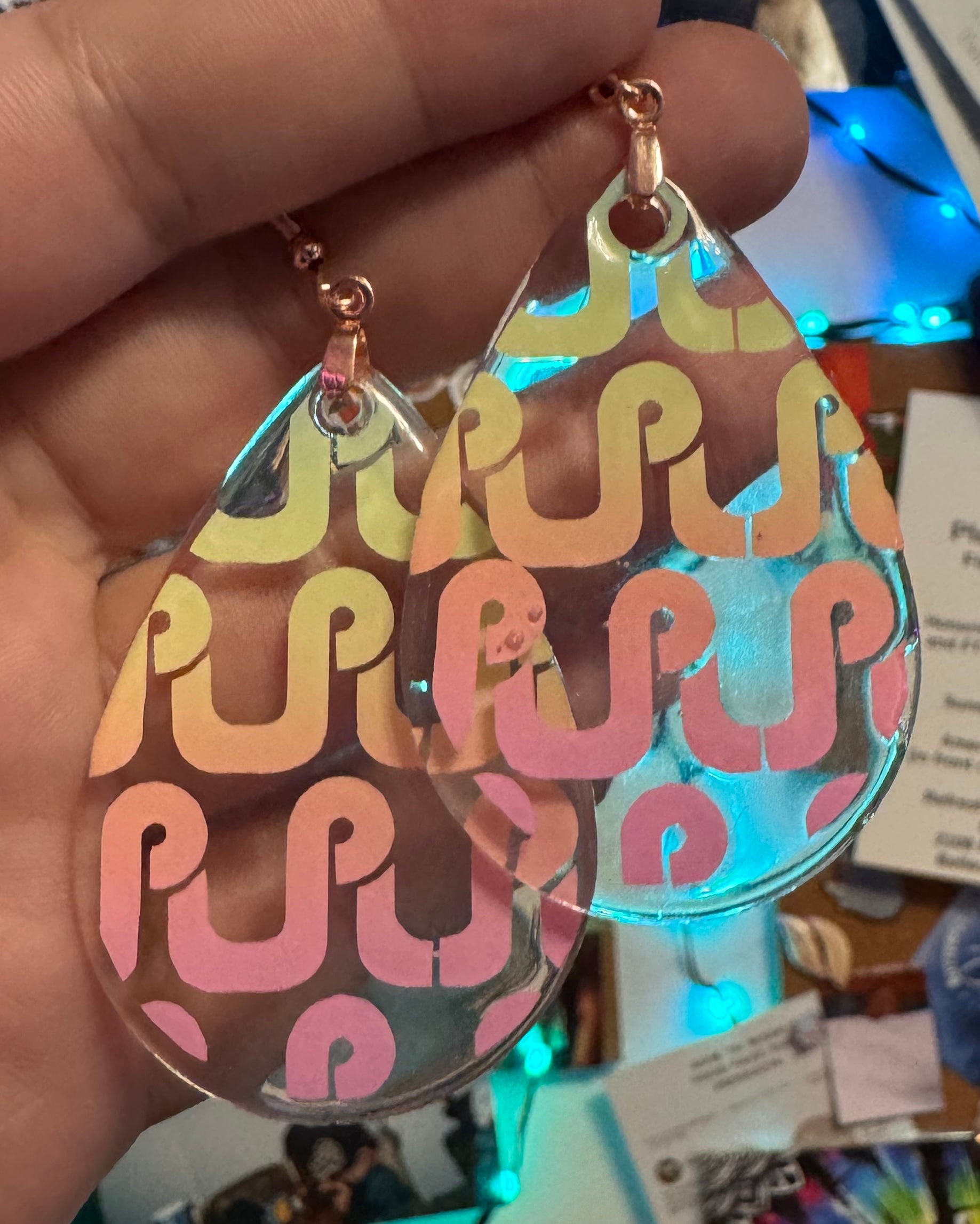 ✨ Single Layer Pretty Lights Logo Resin Teardrop Earrings ✨